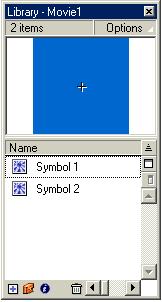Our last menu is the library menu. This menu shows you all of the objects that you are using as movie symbols. It is very important so you will know what objects you are using in your movies. From this menu, you can create folders of items, create a new symbol, and delete unused symbols.